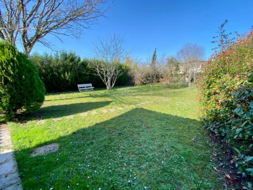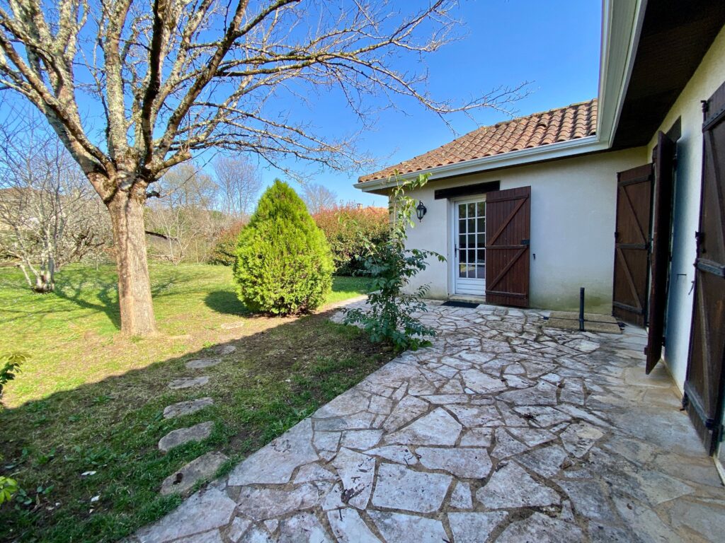 Exclusive! Charming single-storey house 2.5km from the centre of Bugue. Located in the middle of its grounds, it offers on each side of the house a terrace overlooking a flat and wooded garden area.