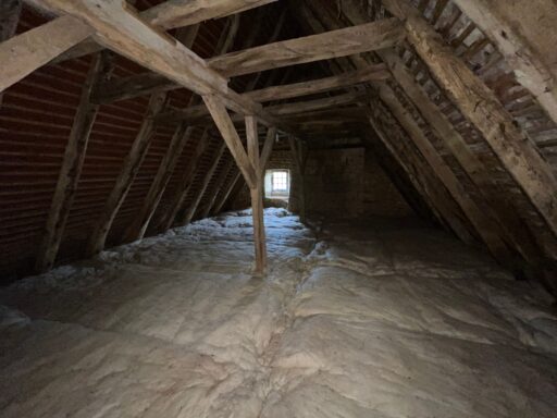 🛏️ Upstairs: a landing leads to two bedrooms, a shower room with WC, and a majestic 40+ m² room with fireplace – convertible into a master suite or additional living space. The attic offers great potential for creating several extra bedrooms.