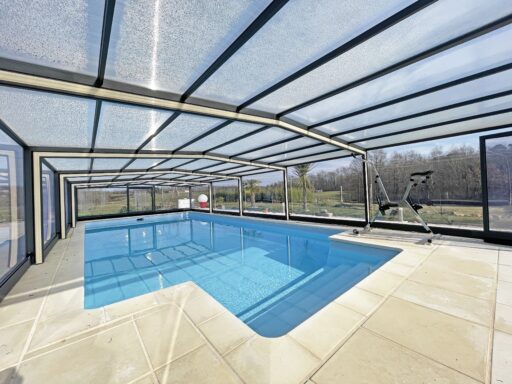 🏊 The outdoor area has been thoughtfully landscaped: a recently installed heated pool with removable shelter and pool house currently being finished — works will be completed before handover.