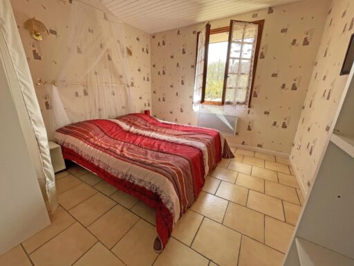 The second gîte, with breathtaking views of the sunsets, offers a living room, a separate kitchen, two bedrooms, and a shower room.