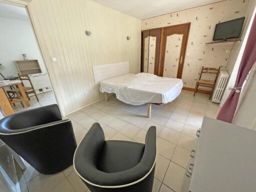 The first gîte has a living room-kitchen, one bedroom, and a shower room.