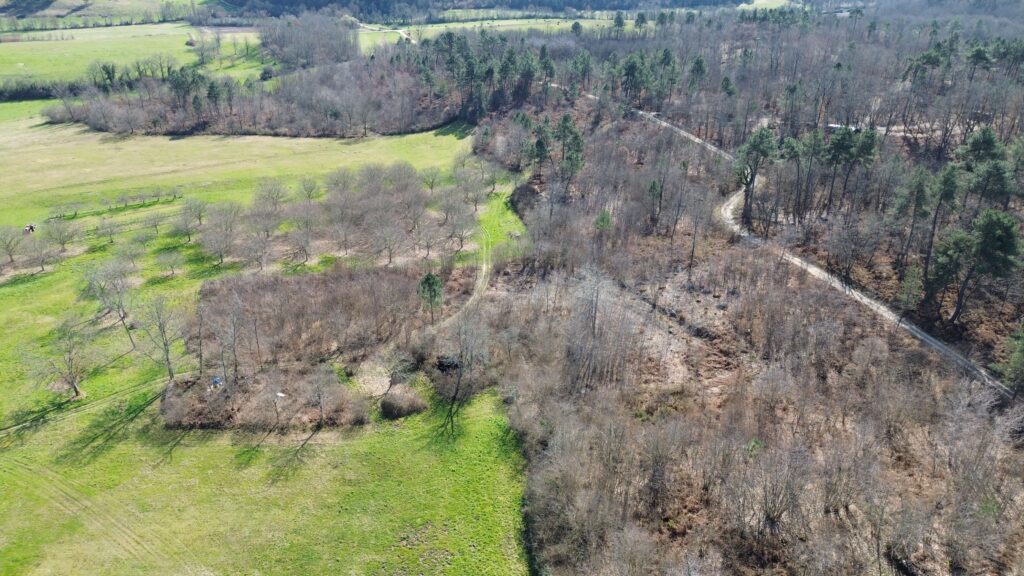 Il se compose d’environ 7 hectares de bois, 8 hectares de prairie, ainsi que 1 hectare de châtaigniers en production. Vous y trouverez également une source et un petit étang. L’ensemble, légèrement en pente, est parfaitement adapté à l’accueil de chevaux ou de tout autre type d’animaux.