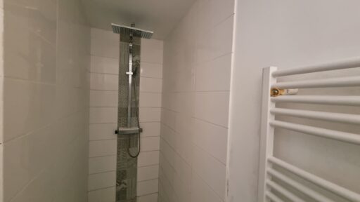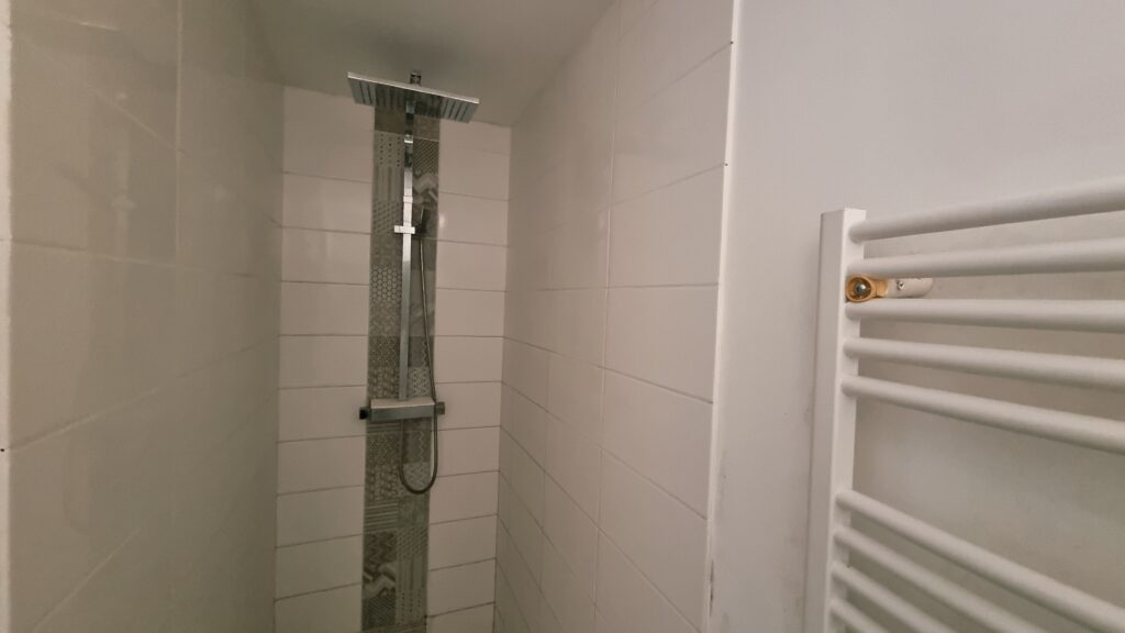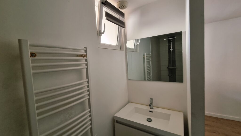 Il est composé d’un grand séjour de presque 30 mètres carrés, d’un coin cuisine, d’une grande chambre de 16m², d’une salle d’eau avec douche à l’italienne et d’un wc.