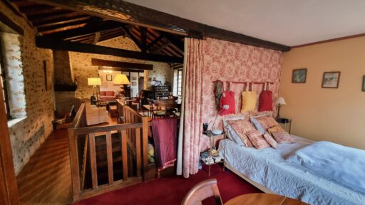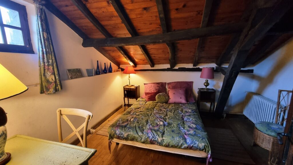 Le rez-de-jardin offre une chambre confortable, tandis qu’à l’étage se trouvent deux autres chambres.