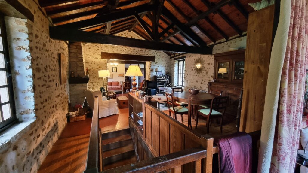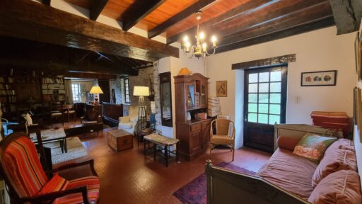 – Une belle pièce de vie authentique ouvrant sur une agréable terrasse