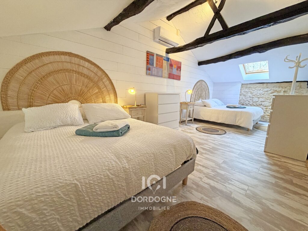 – Étage : 2 grandes chambres, une salle d’eau avec WC