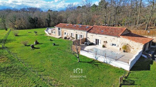 Idéalement située sur la commune de Villamblard, à mi-chemin entre Périgueux et Bergerac, cette propriété rénovée avec goût comprend deux maisons en pierre sur un terrain entièrement clos de 5 800m², le tout en position dominante avec vue dégagée sur la vallée.