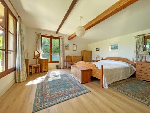 La partie nuit comprend une magnifique suite parentale lumineuse avec salle de bains et WC, ainsi que deux chambres supplémentaires accompagnées d’une salle d’eau et d’un WC — un lieu idéal pour profiter pleinement de la vie à la campagne dans le confort et la tranquillité.
