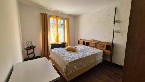 Elle se compose, au rez-de-chaussée, d’une cuisine et d’une belle salle à manger/salon. À l’étage, vous trouverez deux grandes chambres ainsi qu’une salle d’eau. Une partie du grenier, déjà en partie aménagée, peut servir de chambre supplémentaire ou de bureau.