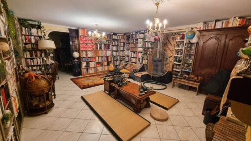Étage : salle de musique / salle de jeux (billard, piano ancien)