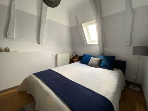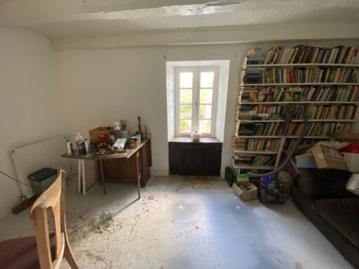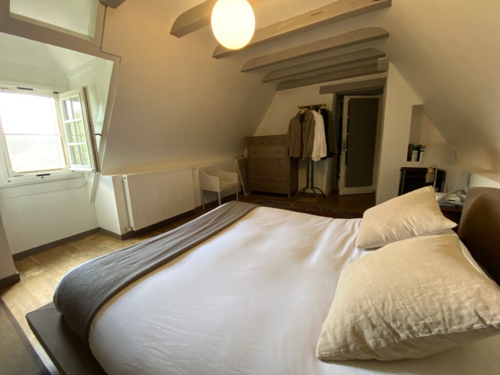 À l’étage, deux belles chambres sous plafonds à poutres apparentes vous accueillent dans une ambiance cosy. Le large palier, actuellement utilisé comme bureau, peut également faire office d’espace de détente ou de lecture. Une pièce complémentaire offre un espace idéal pour un second bureau, un dressing ou un petit atelier.