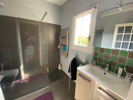 La salle d’eau de ce niveau nécessite des travaux de rénovation et d’intégration à l’ensemble de la maison.