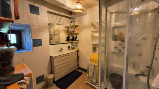 Les menuiseries sont en double vitrage et l’assainissement est presque conforme. Le chauffage est assuré par une chaudière centrale au fioul.