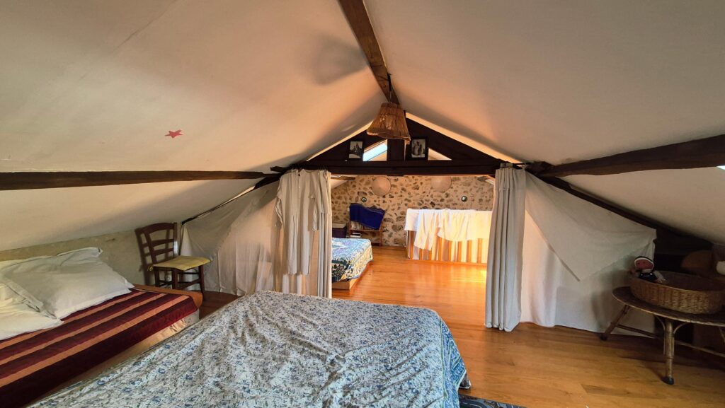 La maison se compose actuellement de deux chambres. Une troisième chambre peut être aménagée très facilement dans un espace déjà prévu à cet effet, sans nécessiter de gros travaux.