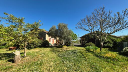 À l’extérieur, le charme opère immédiatement : de nombreux arbres fruitiers, un espace idéal pour un potager, et un terrain qui garantit calme et intimité. Les voisins, situés à l’arrière, sont discrets et apportent une présence rassurante.